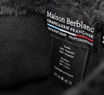 This winter hat instantly asserts its character. Structured lines. Controlled volume. The velvet top, with its smooth touch, contrasts with a cuff in faux fur—enveloping and protective. The Maison Berblanc metallic Label highlights an elegant and assured signature.