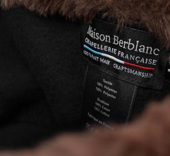 This winter hat instantly asserts its character. Structured lines. Controlled volume. The velvet top, with its smooth touch, contrasts with a cuff in faux fur—enveloping and protective. The Maison Berblanc metallic Label highlights an elegant and assured signature.