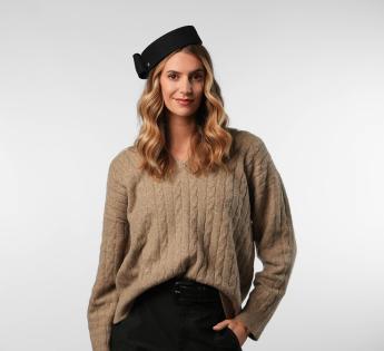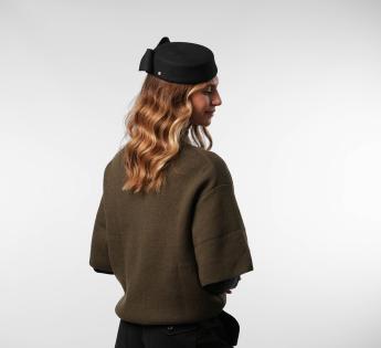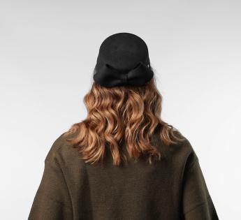 Created and crafted in our workshop in Lyon, this model showcases exceptional artisanal expertise. Every detail, from the volume of the bow to the perfect hold of the felt, is meticulously studied. Worn slightly tilted, it refines the carriage of the head and highlights personality. A bold timeless piece, as elegant as it is unforgettable.
