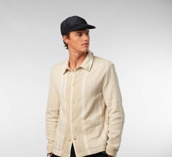 Baseball-inspired cap reimagined for winter, featuring a blend of soft and contrasting materials. The crown in corduroy velvet adds depth and a vintage touch, while the brim in textured wool ensures warmth and comfort.