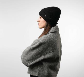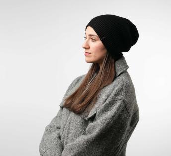 Thanks to the natural thermoregulating properties of wool and cashmere, this beanie maintains the ideal temperature without causing perspiration. Lightweight, unlined, yet incredibly warm, it adapts to all head sizes thanks to its stretchy knit. A discreet label signs this piece with sobriety, designed to last and accompany you all winter with softness.