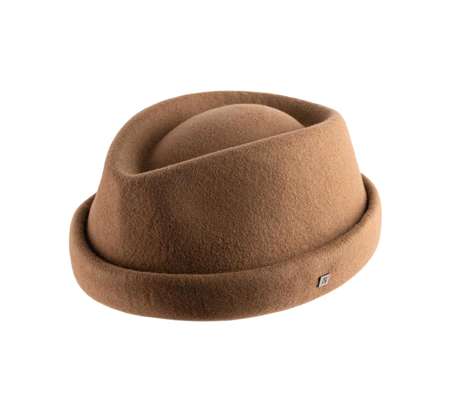 Made from wool felt, this model offers a stable and comfortable fit, with a marked crown and a wide, clean cuff. An artisanal piece, designed to accompany a contemporary silhouette with character and precision.