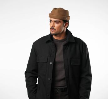 Simplicity, style, and craftsmanship are the key words. This headpiece with a bold design is the result of meticulous work in our Lyon workshop. Starting from a Fedora Hat base, we sculpted a hybrid model between the Docker Beanie and the toque, for a modern, graphic, and perfectly structured look. The discreet metal Label on the front underscores the identity of our creation.