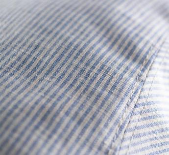 Entirely crushable, it slips into a pocket without losing its shape. Its sleek silhouette and structured brim create a refined look. The fine pinstripe pattern and luminous hue lend a natural distinction. Equipped with UPF50+ UV protection, it shields you from the sun while remaining light and breathable.
