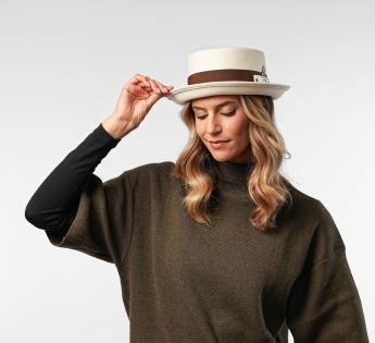 It can be worn in several ways: with a downturned brim for a sleek style, or with an upturned brim for a more daring look. Unisex and versatile, this hat suits both feminine and masculine wardrobes. Ideal for those seeking a statement headpiece, both elegant and decidedly modern.
