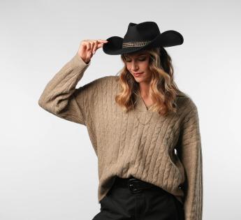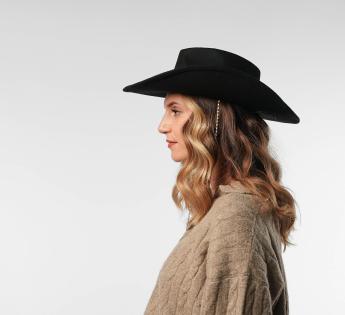 This western hat stands out for the freedom it offers its wearer. Its wide brim, entirely brass-edged, can be shaped at will: turned up for a bold cowboy spirit, slightly curved for a more discreet style, or left straight for a contemporary look. A true playground for style.