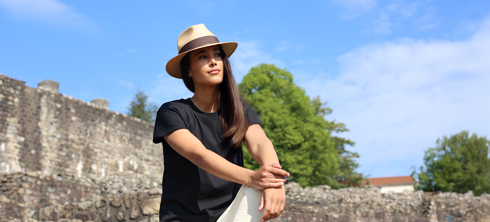 Heart-shaped face / narrow jaw: Round-brimmed hats with short brims will be your best friends to keep the finesse of your face and not drown it under an important mass.