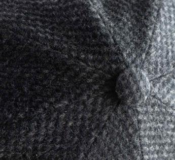 Hatteras cap, recognizable by its eight panels. It is crafted from fine fibers of recycled cashmere. Its cut is generous, with a button on top of the crown.
