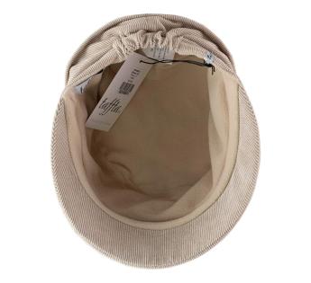 Headwear with a hybrid design, between a beanie and a gatsby cap. The topstitching on the design adds volume for a bolder and more stylish result. Its look gains femininity and charm.