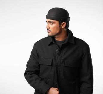 Bold, sleek, and decidedly contemporary. This Docker Beanie in felt reinterprets the codes with character. Derived from a Bowler Hat base, it has been entirely reworked and hand-molded in our Lyon workshop. The result is a piece with a minimalist design, enhanced only by a silver metallic Label, a discreet yet assertive signature of our craftsmanship.