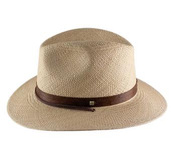 Authentic Panama Hat, shaped like a fedora, with a mid-length, drooping brim (Outback Hat). It embodies raw elegance. Its palm leaf weaving, with slight irregularities, gives it a unique charm. With its protective brim and genuine leather chin strap, it combines style and functionality for summer getaways. This Panama Hat, a true ode to craftsmanship, whispers the stories of ancestral know-how while evoking the subtle scent of leather warmed by the sun.
