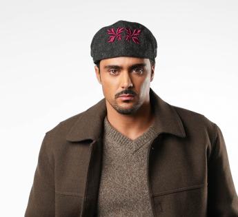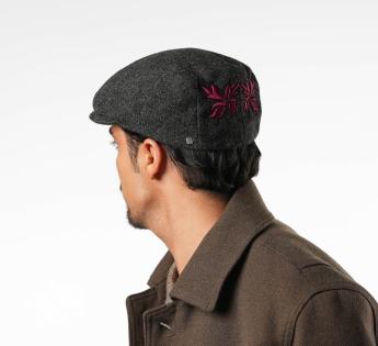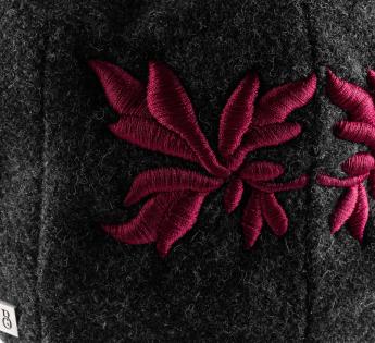 At the back, a raised embroidery crafted in our workshop provides a strong signature. The 3D pattern captures the light and reveals the full character of this piece, designed as a standalone accessory. This flat cap embodies an art of detail, blending graphic style with timeless spirit.