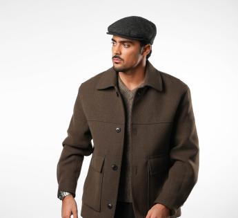 Graphic elegance and authentic material meet in this flat cap made of virgin Shetland wool. Its sharp cut and short brim give it a modern, perfectly balanced line. Lined with a soft, insulating fleece, it promises warm comfort without compromising on elegance.