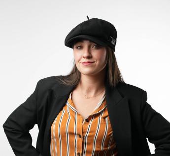 This cap boldly revisits the codes. Its upper part has been deliberately tilted to evoke the gesture of the beret, subtly tilted to the side. This detail of cut, far from being trivial, creates an asymmetrical line full of allure, which energizes the posture and asserts a true personality. The loose volume provides structure and comfort, while the well-held brim anchors the whole in a mastered urban style.