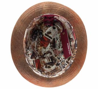 Player-style hat made from a blend of wool and cotton. The patterns on its crown and brim add contrast. Its lovely satin band is enhanced by a subtle play of color on the bow for a refined touch.