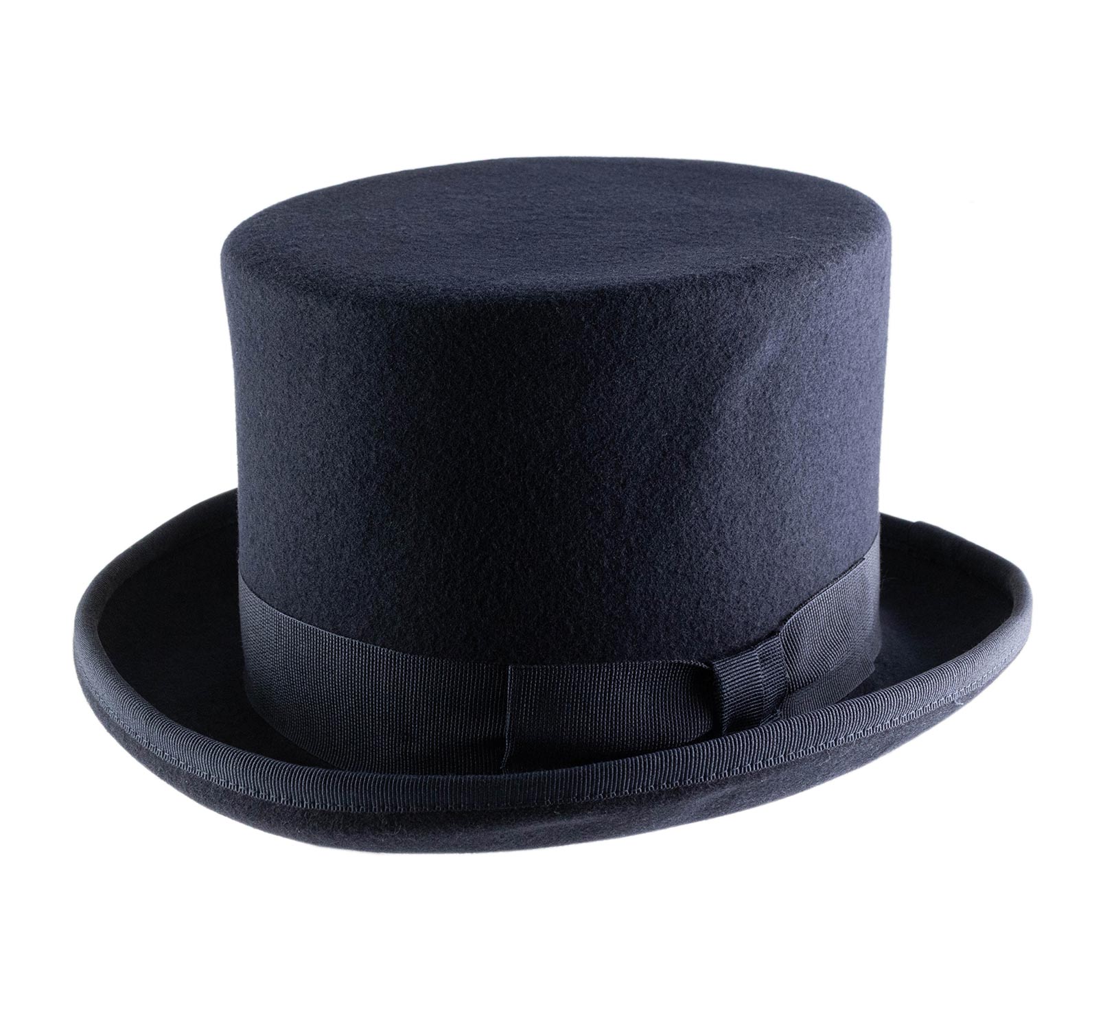 This top hat in hardened wool felt embodies elegance in its purest form. Its deliberately accentuated high crown creates a majestic vertical line, a signature of grand ceremonial silhouettes. The rigid felt, meticulously crafted, ensures impeccable hold and a refined finish.