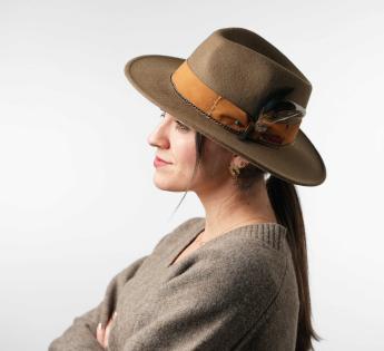 The association of matters is one of the trends this season. See it yourself with this well-thought felt-suede combination. The result is a classic headgear lifted with a braid of a cheerful natural color which successfully displays topstiches, fancy and a feather. So we are enjoying a creation to which it has been added a nice touch of radiance.