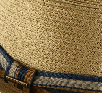 A discretely striped-coloured braid surrounds this beautiful porkpie hat. A model renewed here by Stetson of its expert touch with a trendy appearance but by keeping its retro chic note. Make your look stand out thanks to this timeless headdress, never overwhelmed by occasions.