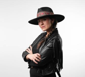 Western hat with a bohemian style, crafted in our workshop in Lyon. Made from Italian wool felt, warm and naturally water resistant, it stands out with its wide, latte-colored brim that can be adjusted according to the desired look. An artisanal creation designed to face winter with elegance and character.