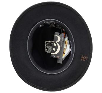 The ensemble is highlighted by a double contrasting braid combining raw suede leather and satin ribbon. This play of textures, between roughness and softness, accentuates the singular allure of this hat with a strong character.