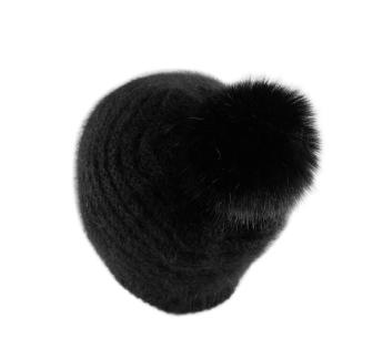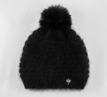 Softness and winter elegance for this beanie knitted in France from a light and mellow angora blend. Its fluffy knit offers a silky touch and comforting warmth, perfect for cold days. The synthetic fur pompom adds a feminine and refined touch.