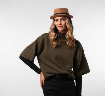 Crafted in wool felt, it offers structure, comfort, and perfect hold. Its typical flat crown and upturned brim shape assert a modern look, while remaining accessible and easy to wear. A hat with a strong character, designed for those who love to assert their style without overdoing it.