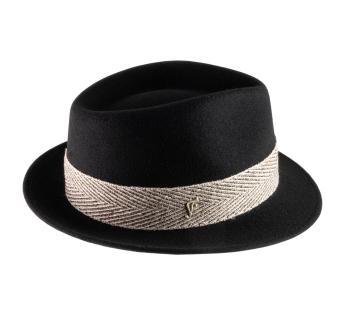 Trilby hat decorated by a pared-down braid with big herringbone patterns around the teardrop crown. Elegant and timeless, the trilby is here refined to allow an incredible wearing pleasure. It is water-repellent thanks to its tight felt, which is reinforcing at the same time its protection.