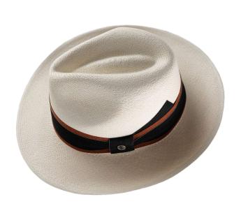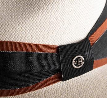 This Montecristi Panama Hat stands out with its grosgrain ribbon, refined in timeless hues, whose layered construction adds subtle depth. The asymmetrical detail extending at the back infuses a modern dynamism into this classic silhouette, signed with a brushed silver badge.