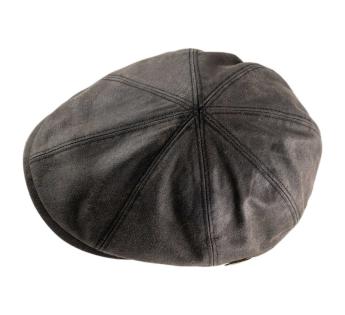 Vintage allure and adventurer spirit for this 8-panel Flat cap by Aurega. Crafted from waxed cotton with a glossy finish that mimics aged leather, it naturally resists moisture while maintaining a beautiful suppleness. Its tailored cut ensures a good fit and elegantly highlights the facial line. A great choice to assert one's style with discretion.