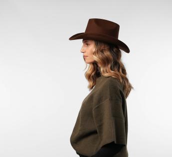 Made in Italy, this western hat subtly revisits the iconic codes of cowboy style. Its well-defined cattleman crown gives it an authentic silhouette, while its wide-curved upturned brims evoke the elegance of the great outdoors.