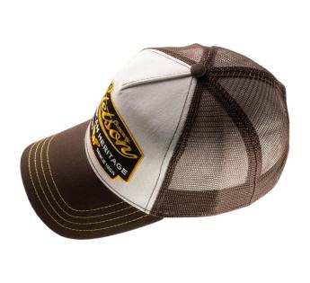 American style Trucker cap with a frontal decoration to make you look very relax on your outings for rides or during chores.