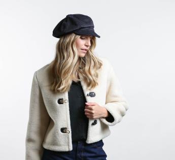 Versatile, it can be worn in different ways: pulled down for a casual style or tilted to the side for a more sophisticated touch. Fleece-lined for optimal comfort, this cap is ideal for cooler seasons, combining vintage charm with modernity.