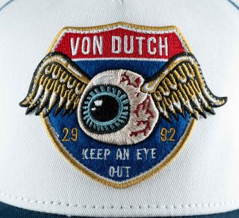 Von Dutch patch in relief, satin embroidery with strong visual impact, the brand's signature emblem.
