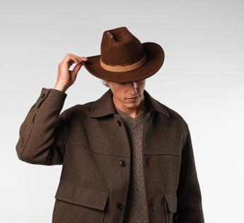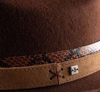 The snake-effect trimming, accented with a metallic Label, marks a bold style, straddling the line between rustic and refined. This model is inspired by the legends of the West while maintaining a distinctly French elegance. A hat of character, ready to forge its path between artisanal tradition and adventurous spirit.